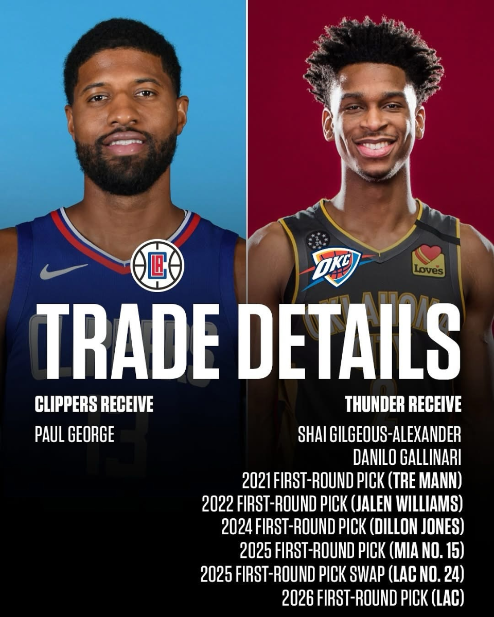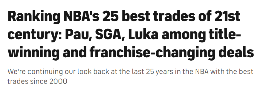 美媒评新世纪25大交易:雷霆获亚历山大居首 湖人得到东契奇第15